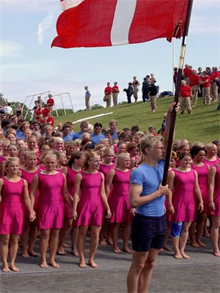 I hans nya bok, en kulturanalys av det danska Landsstævnet med titeln Idræt som fest bogen om landsstævnet skriven tillsammans med Bo Vestergård Madsen, är det åter festen som idrottens djupaste ursprung och mening som är föremål för Henning Eichbergs uppmärksamhet. Boken recenseras i en kommande uppdatering av idrottsforum.org. Bilden visar elever från Bernstorffsminde Efterskole som ska medverka vid Landsstævnet 2006. |