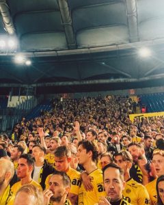 Den beryktede hjemmefansen sitter på Curva Sud. Men snart blir også Glimt-fansen generelt og supportergrupperingen J-feltet spesielt, allment kjent, for det var trøkk også hos bortefansen på Distinti Nord. Som laget og klubben, er supporterne i utvikling. Sangrøsten til den gjengse Aspmyra-gjenger har tatt seg opp de siste ukene, og med flere på borteturer bygges både fellesskap, samhold og identitet, som er viktige ingredienser i supporterkulturen. Merk at den moderne supporterkulturen i Norge av mange hevdes startet i Bodø med Den gule horde på 1970-tallet. Bare spør Dutte. Sånn sett har Glimt-supporterne en stolt fortid og en stor fremtid å forvalte. Roma-kampene gir frempek om en supporterkultur på fremmarsj.