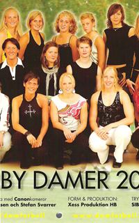 | Bilden visar ett utsnitt från omslaget till Hammarbys damfotbollslags kalender 2005. I årets kalender (2006), säger man på hemsidan, ”har vi tagit fasta på den säsong som är viktig för oss fotbollsäsongen”. Svett, alltså. Förra året var det mascara som gällde. Och som framgår av Jesper Andreassons artikel är det där någonstans, mellan svett och mascara, som damfotbollens själ och fotbollsdamernas verkliga identitet kan skymtas. |