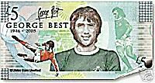 Ulster Bank i Nordirland har lanserat en speciell, upplagebegränsad fempundssedel till minne av George Best på ettårsdagen efter hans död. Sedeln, vars nominella värde motsvarar ca 66-67 svenska kronor avbildar Best i Nordirlands dräkt såväl som i Manchester United-kläder. Sedeln visades upp för världen häromveckan i närvaro av Bests pappa, Dickie, och systern Barbara. Inga seriösa bedömare tror att sedlarna någonsin kommer att betala för en pint på puben, de är redan samlarobjekt. Det finns några sedlar till salu på eBay och budet är i skrivande stund ca $40, ca 280 svenska kronor. Det lär stiga.