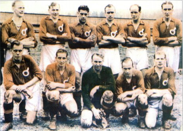 | Torbjörn Andersson nämner i sin artikel Degerfors som en bruksort som tidigt gjorde kopplingen mellan fotbollslaget och lokalsamhället i moderna utlitaristiska termer. Dock inte så tidigt som 1943, då denna klassiska bild av DIF togs, och publicerades i Rekordmagasinets. |
