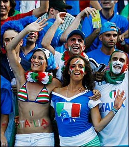 | FIFA World Cup, eller på svenska fotbolls-VM, i Tyskland tidigare i år lär gå till historien som ett av de mest framgångsrika eventen. Den ekonomiska vinsten från själva fotbollsbiten kommer att hålla i gång tysk fotboll i årtionden. Därtill var evenemanget ur ett idrottsturistperspektiv synnerligen lyckat. Inte minst var de italienska fansen glada, efteråt, självklart, men också här, inför Italiens första match i turneringen, och den första i ett VM på tolv år. |