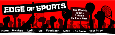 För den som inte har lust att vänta så länge som fyra veckor på att få ta del av Dave Zirins idrottsälskande och idrottskritiska tankar rekommenderar vi ett besök på Edge of Sports, Zirins hemsida med en ny krönika varje vecka om idrott och politik, var för sig eller tillsammans. Inte sällan handlar det om de amerikanska nationalidrotterna, men arkivet, som sträcker sig ett år tillbaka i tiden, rymmer åtskilliga godbitar av allmänt intresse, till exempel den från augusti i år där han jämför de olympiska spelen med McDonalds, och jämställer i den analogin kvinnornas gymnastik med The Big Mac. Den senaste krönikan berättar om när Sarah Palin, värsta hockeymorsan, buades ut ur Wachovia Center dit hon kom häromdagen för att drop the puck i matchen mellan Philadelphia Flyers och New York Rangers Philadelphia är en så kallad swing state. Kolla in händelsen på YouTube och läs Zirins krönika.