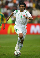 Den irakiske landslagsstjärnan Nashat Akram, här i Iraks match mot Sydafrika på Ellis Park i Johannesburg den 14 juni 2009.