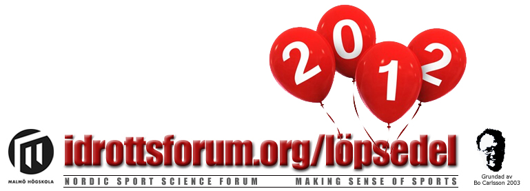 Välkommen till idrottsforum.orgs etthundrafyrtiofemte uppdatering sedan starten den 6 juni 2003, och den första i den tionde årgången. Nästa uppdatering läggs ut onsdagen den 15 februari 2012, som vanligt med artiklar, recensioner och andra nyttiga, intressanta texter. Vill du slippa oroa dig för att missa något så kan du kostnadsfritt anmäla dig till vår mailinglista, och få ett e-brev som en påminnelse om att sajten uppdaterats. Klicka och skicka! Förra uppdateringens artiklar, Martin Treumer Gregersens om fotboll och integration i Danmark och Sverige, Daniel Alsarves om idrott och demokrati, och Erkki Vettenniemis om Paavo Nurmis dopningsanklagelser, publicerad i Scandinavian Sport Studies Forum, finns, tillsammans med samtliga publicerade artiklar, totalt 290 till antalet, tillgängliga från artikellöpet. Förra uppdateringens löpsedel ligger här. Är du själv idrottsforskare? Då vill du säkert vara med och presentera dig på idrottsforum.orgs forskarlista. Den omfattar idag inte mindre än 228 nordiska (med något undantag) idrottsforskare, tre nya i denna uppdatering. Se här vad vi vill veta, och maila sedan informationen till redaktören. Vill du medverka på idrottsforum.org? Kanske med en artikel? Eller vill du recensera böcker? Skicka då ett mail till redaktionen. För att underlätta för författare och redaktör har vi ställt samman en sida med enkla instruktioner för författare (pdf-fil). För samtliga texter på idrottsforum.orgs webbplats gäller att författaren äger sin copyright. Osignerade texter är skrivna av redaktören och kan fritt reproduceras eller citeras med angivande av källan.
