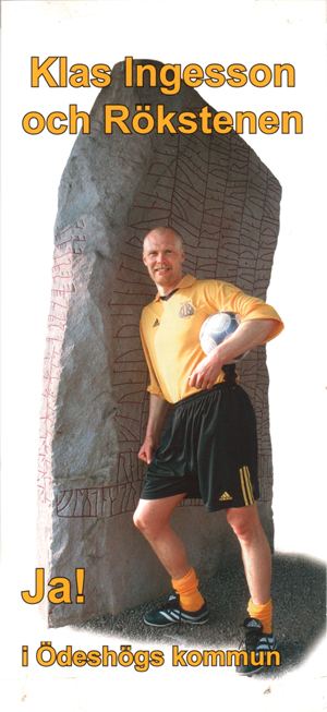 Helt klart är att fotbollens marknadsföringspotential i detta avseende är viktigare för mindre städer. Att i en liten ort ha ett allsvenskt fotbollslag innebär att nationens blickar faktiskt är riktade mot samhället, vilket annars hör till ovanligheterna. Också gamla storspelare kan vara värda att ta till för mindre kommuner. Ett exempel på detta är Ödeshög i Östergötland, där kommuninvånaren Klas Ingesson på äldre dagar använts för att lansera det rika kulturarv bygden erbjuder (se figur 8).