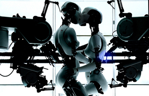 Bevægelser strømmer, som flydende, farvede strømme af væske. Lyset bevæger sig. Tekno kroppene bevæger sig. Det overordnede indtryk er drømmeagtigt. En mareridtsagtig drøm om sammensmeltningen af det levende og det maskinelle men også en forførende stemning af kærlighedens mulighed som intenst nærvær. Musikken, bevægelserne af farverne og af kroppene skaber en opløsning af grænser mellem det døde og det levende. Der er mange glidende skift mellem nær og fjern, mellem det genkendelige og det grænseløse og abstrakte. Tiden er langsom, og den sættes næsten i stå i det lange kys, mens rytmen af berøringen af hånden, der kærtegner hoften gennem fingrenes bevægelse, bliver som en sensuel blid kærtegnende bevægelse. Det er en videofantasi af den romantiske kærligheds drøm, men også om kosmisk længsel. Men det er et billede af en lidenskabelig intensitet af berøringens og bevægelsens sanselighed, hvor kropsholdningerne og rummet spiller sammen som mønstre af lys og skygge og nærbilleder, hvor små udtryksbevægelser, som munden der åbner og lukker, øjnene der ser og lyser, fingrenes sensitive berøringer og blide, bølgende åbne og lukkebevægelser. Bevægelserne i halsleddene og kropshældningen er med til at udtrykke forskellige kropslige stemninger og intensiteter. Kroppen ånder gennem denne artikulation af bevægelse i de små led.