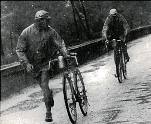 Fransmannen René Vietto domnade av kölden på hög höjd i Girot 1938, steg av cykeln och fortsatte till fots. Åren efter andra världskriget fick Girot kanske en ännu större betydelse då landet åter skulle enas och byggas demokratiskt efter fascisttiden och Mussolinis diktatur. Italien var sönderslitet och regionerna i norr och söder stod långt ifrån varandra. Kommunikationerna var bristfälliga och problemen stora, särskilt i de södra regionerna. Maffian, såväl på Sicilien som i Neapelområdet, profiterade på detta och byggde ut sin organisation, för där statsmakten och det civila samhället är svaga där går maffian fram och tar för sig (Sund, 1999; Dickie, 2004). Såväl vänstern, inklusive KPI, det starka kommunistpartiet, och kristdemokraterna stödde då aktivt loppet. Alla progressiva krafter insåg betydelsen av att landet blev en verklig enhet igen och där hade sporten och Girot en framträdande roll. Sporten byggde broar och verkade förenande. Cyklisterna cyklade genom olika regioner och på så sätt kunde alla se att landsdelarna hörde ihop trots politiska och regionala motsättningar (Foot, 2011). Detta kan jämföras med hur Vigarello (1997, 2003) ser på Tourens roll i Frankrike. Båda loppen hade en nationalistisk, sammanbyggande roll det var Italien respektive Frankrike runt varje år vid samma tidpunkt: stort och viktigt, pedagogiskt sett. Så småningom har Touren fått en viktig roll för Frankrikes turistindustri. Girot har också denna potential, men den har ännu inte insetts. Mer olikheter, för att ta fram dessa dimensioner, är att i Girot fanns sponsorerna ännu tydligare med redan från början. Man körde stallvis redan året efter premiären. Under 1912-års tävling provade man med lagtävling rakt igenom för man ville komma bort ifrån hierarkin med hjälpryttare, ”gregari”, men det lyckades inte (McGann, 2011). Denna norm, den hierarkiska regeln, hade redan satt sig bland cyklisterna, alltså att vissa cyklister fick agera hjälpryttare till andra. Det var en av flera normer som kom att utvecklas inom den professionella cykelsporten under årens lopp, och det var främst i Girot och i Touren som denna utveckling av det oskrivna regelsystemet skedde. Därefter överfördes dessa normer till övriga cyklister, sist genomfördes denna socialisation till amatörcyklisterna i sådana lopp som det svenska Sexdagars (1924-1975). Två andra normer var dels regeln om solidaritet: man hjälper en medtävlare som råkat ut för svårigheter efter en vurpa eller vid punktering, dels regeln om samverkan, som innebär att man vid utbrytningar till exempel samarbetar även med konkurrenter. Dessa regler kunde också brytas och i cykelsportens historia finns många sådana mer eller mindre flagranta exempel (Sund, kommande). Entreprenörernas roll Studerar man listan över stall som ställt upp i Girot under årens lopp framträder några av de stora cykelfabrikernas varumärken som vinnande stall. Det gäller Bianchi, med segrar 1911, 1947, 1952, 1953 och 1978, och franska Renault-Gitane-Elf åren 1980 och 1981. Till skillnad från Touren började Girot med renodlade, kraftiga stigningar och bergsetapper redan efter några år. År 1911 gick en etapp uppför sluttningarna kring Piemonte, och 1933 satte man upp det första bergspriset som den skicklige Alfredo Binda för övrigt tog hem (Saldes, 2005). Det kan vara anledningen till att man tillät växlar på cyklarna tidigare än i Touren. Cykelfabrikanterna var annars djupt involverade i loppen, men närheten var större i Italien mellan sporten och industrin; man kan tala om ren integration. Bakom loppet stod entreprenörer från norra Italiens industriregioner. Dessa entreprenörer utgjordes av en grupp män som nästan alla hade sin bakgrund i den professionella cykelsporten, och den italienske cykelexperten Paolo Facchinetti kallar gruppen för ”the made in Italy clan”. Med Antonio Gramsci, som fängslades och dog i Mussolinis fängelse och som vad jag vet aldrig skrev något om sport eller cykelsport i sina fängelseanteckningar om filosofi och samhälle, kan man säga att denna sammanhållna gruppering utgjorde ett historiskt block inom italiensk cykelindustri. De var organiska intellektuella, för att fortsätta att tala med Gramsci, och de var därmed med om att leda landet in i den moderna eran (Gramsci, 1971). Flera kom från familjer där pappan en gång startat verksamheten. Det gäller familjerna Bianchi (cyklar med den speciella, grönaktiga färgtonen) och Compagnolo (komponenter, främst växlar). Andra som Ugo De Rosa, Faliero Masi, Ernesta Colnago och Giovanni Pinarello hade dragit igång mer på egen hand. Flera av dem hade själva varit professionella cyklister och visste därför vad som gällde och framför allt vad som inte passade. Så småningom och från och med 1970- och 80-talen fick dessa entreprenörer, tekniker och fabrikörer hård konkurrens från Japan och Shimano. Konkurrensen från de franska cykelfabrikanterna var man mer van vid, här fanns också familjeföretag som Peugeot, men den japanska utmaningen var djupare. Inte förvånade var även Shimano ett familjeföretag med en tekniskt sinnad entreprenör som grundare (Sund, kommande). Cykelsporten var länge den dominerande sporten i Italien och den sågs som sagt som en symbol för det enade och från norr till söder sammanväxande Italien, moderniteten och det nya italienska samhället (Pivato, 1987). Girot var en kraftfull kreatör av den nationella identiteten och bidrog särskilt starkt till stärkandet av det italienska språkets spridning över hela landet (Foot, 2011). Det var givetvis en mycket viktig process. Man kan annars tro att fotbollen har spelat denna roll, men den ansågs länge som en renodlad brittisk sport, alltså inte genuint italienskt. En tränare tilltalas fortfarande ”Mister” i den italienska fotbollen och flera klubbar har haft ett tidigt engelskt inflytande som 