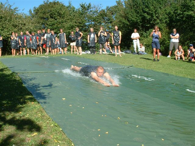 En annan märkvärdighet fick mig att tänka tillbaka på när jag flyttade från Stockholm för att börja som idrottslärare i Lund. Då la jag märke till hur barnen verkligen utnyttjade varje snöflinga som föll över det skånska slättlandskapet. De fåtal vinterdagar som det föll någon snö hade så gott som alla elever med sig pulkor och tefat till skolan för att under varje liten rast åka kana på de pyttesmå vallar som omgärdade skolan. I det här fallet, på idrottslärarkurs i Danmark, handlade det om att en plastmatta, som lagts ut nerför en grässlänt, besprutades med vatten och hur deltagarna glatt kastade sig på magen (och hur som helst) utför denna plastkana, iklädda svarta sopsäckar för bästa möjliga glid. Ja, har man en backe så gäller det att utnyttja den!