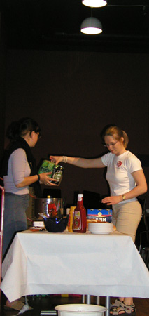 Johanna Ifwer och Anna Senestad förbereder skaffningen till invigningsfesten: varm korv kokt och mellanöl bjuds det på. Som på en bättre fotbollsarena, fast här är korven varm, och ölen kall. Enhetschefen vid Lärarutbildningen och idrottsforum.org's ansvarige utgivare Aage Radmann håller ett vakande öga på händelserna.