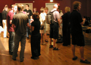 Professorns i idrottsvetenskap, tillika medlem i redaktionen för idrottsforum.org, Tomas Peterson, anländer och välkomnas av Aage Radmann. Klockan har slagit 14.00 och ett stigande antal ionbjudna minglar glatt med korv och öl.