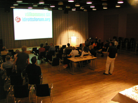 Invigningen avslutades med en ingående demonstration av idrottsforum.org, av initiativtagaren till sajten, Bo Carlsson, tillika en av dess redaktörer. Alla portalens kvaliteter fick sin belysning, alla möjligheter uppvisades, framtida utveckling utlovades. Åskådarna föreföll vederbörligen imponerade och tackade för presentationen med en varm applåd.