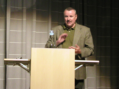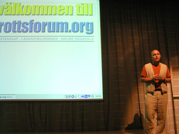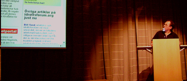 Förste talare var Liss Carlsson, avdelningschef på Natur & Teknik, Malmö stadsbibliotek, som hälsade alla välkomna till biblioteket och Röda rummet, och klargjorde stadsbibliotekets intresse för idrotten och idrottsforum.org. Hon följdes i talarstolen av Aage Radmann, som höll ett anförande om universitetens och högkolornas "tredje uppgift". Klicka på Aage nedan till vänster för att få reda på vad han sade.