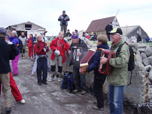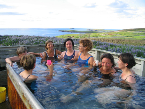 ![]() Så här efteråt är det svårt att välja ut någon enskild av alla fantastiska upplevelser som rättvist skulle kunna sägas vara den mest fantastiska. Var det kanske den märkvärdiga hästskoformade dalen (avtryck efter Odens häst?), Europas största och mäktigaste vattenfall eller platsen för 1990-talets vulkanutbrott med ännu varm lava att värma sig vid och där kontinentaldriften gör att Island blir allt bredare (några centimeter varje år)? Eller var det de ljuvliga baden i de varma lagunerna Myvatn och i Ostekar, där man kunde se solen gå ner och upp under samma bad? Eller var det helt enkelt det ständiga ljuset som fick Húsavík, vattnet och de snöklädda bergstopparna att skimra som i ett magiskt ljus? En alldeles särskild upplevelse blev för oss alla (även för de isländska idrottslärarna tror jag) den kvällstur med båt ”ut i det blå” då vi såg valar, inte bara en gång, utan flera och inte bara på avstånd, utan helt nära båten, innan de dök och visade sin vackra stjärtfena. Vi blev lyriska! Vi landsteg på den nästan obefolkade lilla ön Flatey där vi spanade på lunnefåglar, grillade på stranden och dansade på bryggan till norsk-svensk dragspelsmusik och flera ”instrument” (tack kära spelemän!) innan vi seglade hemåt i midnattssolens sken. Som alltid, när det gäller glada idrottslärarsammanhang, var det full fart på veckans alla aktivitetspass som Anna Bjarnadóttir och Ólafur Áugúst Gíslason med kollegor planerat för oss. Vi lärde oss kroppsbalans i vattnet, att crawla med kroppen (och inte med armarna), bland annat genom att tänka ”höften fram till handen” (och inte tvärtom). Mer balansträning i vatten gavs under vattengympapasset där uppgiften att balansera på en flytplatta på ett ben visade sig vara en av de svårare... En helt oförglömlig upplevelse (och för mig personligen med viss stolthet genomförd bedrift) blev ridturen på islandshäst ut i Islands säregna natur. Det kändes som att rida i ”Vilda Västern” när hästen töltade fram på de smala, slingriga och steniga stigarna. Tusen tack Bjarni Páll Vilhjálmsson för mycket pedagogiskt upplagd förträning och tjusige James för psykologisk stöttning under turen; det behövdes! Olika typer av bollteknik fick vi pröva, dels i ett fit ball pass med många användbara balans-, styrke- och smidighetsövningar (användbara för både träning och rehabilitering), dels när välväxte Jouni Parkkali från Finland introducerade volleyboll genom en mängd olika kastövningar, bland annat parvisa höga kast där det gällde att snabbt sätta sig på golvet, hinna resa sig och klappa i händerna innan bollen fångades (känns fortfarande i sittknölarna). Första kvällen dansade vi massor, ja verkligen en massa ”nordiska” smådanser på isländskt vis under ledning av outtröttliga Kolfinna. Ännu fler danser bjöd Grete Langlo Jagtøien med norska kollegor på. Tyvärr kunde jag inte delta i det norska mycket uppskattade inslaget eftersom det låg parallellt med det svenska bidraget, vilket innebar att jag då berättade om MUGI motorikobservationer och forskning i Bunkefloprojektet, eller Bunkeflomodellen som Ängslättskolans hälsofrämjande arbete nu kallas. Dr Sigurbjörn Árni Arngrímsson höll en föreläsning om olika definitioner och mätinstrument samt relationer mellan fetma och fysisk aktivitet. Han redogjorde för en tvärvetenskaplig studie om livsstil bland isländska 9- och 15-åringar på 18 slumpmässigt utvalda skolor (n=934). Sammanfattningsvis visar resultaten att övervikt bland barn har ökat dramatiskt under de senaste 50-60 åren och nu uppgår till ca 19% av 9-åringar och ca 15% av 15-åringar på Island. Trots att isländska barn är fetare än norska barn har de bättre syreupptagningsförmåga än dessa, mätt med maxtest på ergonometercykel. Men mellan 30 och 40% av isländska 15-åringar når inte upp till de nordiska rekommendationerna för fysisk aktivitet, dvs. mer än lätt intensitet minst 60 minuter per dag. Nästan 40% av de 15-åriga pojkarna och över 25% av flickorna spelar dataspel eller ser på TV fyra timmar varje dag. De slutsatser Arngrímsson drar påminner mycket om de som redovisats i andra västerländska studier och som även legat till grund för interventionen i Bunkefloprejektet, nämligen att