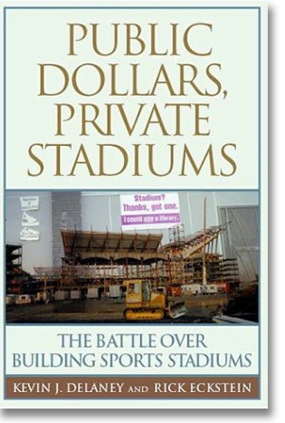 Public Dollars, Private Stadiums: The Battle over Buildning Sport Stadiums 230 sidor, hft., ill. Piscataway, NJ: Rutgers University Press 2003 ISBN 0-8135-3343-0 Alla medelstora och stora städer med självaktning vill ha en, eller helst flera, moderna sportarenor. Sportarenor betraktas av stadens politiker och beslutsfattare som flaggskepp för stadens utveckling och betydelse, och allt fler städer har därför varit mer än villiga att finansiera denna typ av anläggningar med offentliga medel. Att makthavarna ser dem som symboler för välgång behöver emellertid inte innebära att de bringar den mängd besökare, uppmärksamhet och inkomster till staden som förespråkarna lovat. Detta till trots har sportarenorna fortsatt att vara ett viktigt inslag i politikernas/makthavarnas strategier för att ge staden en bra image och locka turister och investeringar. För en kulturgeograf (som jag), med stort intresse för stadsutvecklingsfrågor, är Delaneys och Ecksteins bok relevant, eftersom den berör kulturgeografiska fenomen även om utgångspunkt tas i andra discipliner. Den smälter samman en rad ämnesfält med målsättningen att utröna hur maktspelet bakom byggandet av sportarenor finansierade med offentliga medel ser ut i USA. Författarna bygger upp boken kring några viktiga strukturbildande aspekter:
