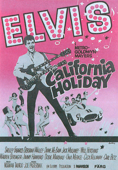 Efter att ha spelat racerförare i sin femtonde film Viva Las Vegas (1964), blev det åter dags för Elvis att sätta sig i förarhytten i den 22:a Elvis-filmen (av 31), Spinout (1966). Filmen hade premiär i USA den 17 oktober, i Storbritannien den 21 oktober, i Finland den 25 november, i Sverige den 5 december och i Danmark den 26 december 1966. I Väst-Tyskland gick den upp 9 juni 1967. I Sverige, och Danmark, fick den titeln California Holiday.[1] Spinout var den sjätte Elvis-filmen med Norman Taurog som regissör (Taurog kom sammanlagt att regissera nio Elvis-filmer, mer än någon annan). Som film betraktad är den tämligen usel och fullständigt osannolik, och stackars Elvis Presley själv, som definitivt hade skådespelartalang och längtade efter att göra mer seriösa roller, förefaller inte alltför motiverad, men han gör plikttroget sitt jobb framför kameran. Filmen, som producerades av MGM, är emellertid analytiskt intressant ur inte minst ett sociohistoriskt perspektiv, eftersom Elvis är en kulturikon, Elvis-filmerna ändå drog en ganska stor publik, och eftersom de, liksom alla andra filmer, förmedlar en viss ideologi. I detta sammanhang tilldrar sig förstås sportmotivet ett speciellt intresse. Året innan, 1965, hade Elvis för första gången på länge haft en del framgång med några av sina låtar på hitlistorna, men 1966 var de flesta av Elvis singlar ”antingen bortglömda sånger från gamla Nashvilleinspelningar eller sånger hämtade från mediokra filmalbum”; nu hade både hans singlar och album sjunkit mot nya bottenplaceringar på listorna.[2] Lamar Fike, en av medlemmarna i ”Memphismaffian”, Elvis gäng av uppassare och livvakter, berättar: Elvis hade så mycket skit på gång att det är ganska häpnadsväckande att han hade sinnesnärvaro nog för att göra de där eländiga filmerna. Under våren 1965 gjorde han Frankie and Johnny på MGM med Donna Douglas. Hon var Elly May i The Beverly Hillbillies. Hon hade varit Miss New Orleans, men det här var en motspelerska som han inte försökte gå ut med. För Donna var en smart tjej. Elvis försökte lära henne om religion och hon kunde ungefär lika mycket som han så de pratade om böcker och om religion. Det var inte alls som med Deborah Walley under inspelningen av Spinout. Jösses! Han förvred skallen på henne, som Linda Blair i The Exorcist.[3] En annan medlem i ”Memphismaffian”, Marty Lacker, utvidgar bilden av omständigheterna vid tiden för inspelningen av Spinout: Filmerna under den här tiden var bara en smet. Paradise, Hawaiian Style [filmen före Spinout, min anm.] var tänkt att vara en uppföljare till Blue Hawaii, men i jämförelse pyrde den bara. Elvis var förargad över den här filmen, för Blue Hawaii hade dragit in alla de där miljonerna och ryktet gick i Hollywood att [producenten] Hal Wallis använt vinsten för att finansiera Becket med Peter O’Toole och Richard Burton. Under tiden satt Elvis fast i de där usla strand-och-bikinifilmerna.[4]